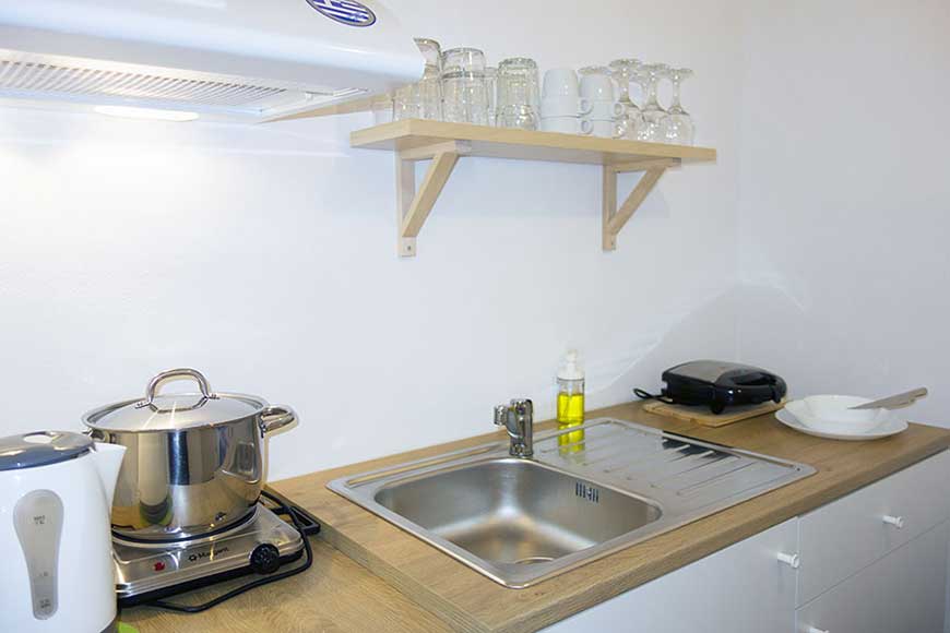 Το Διαμέρισμα προσφερει ενα ήρεμο και ήσυχο περιβάλλον ξεκούρασης και χαλαρωσης και διαθέτει τηλεόραση επίπεδης οθόνης, μικρή κουζίνα, εξοπλισμένη για την παρασκευή πρωϊνού, τοστιέρα, βραστήρας και μηχανή καφέ espresso.