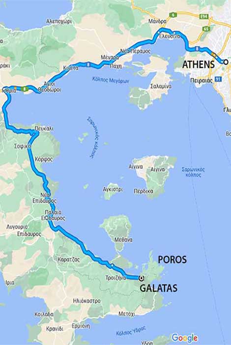 Μόλις φθάσετε στον Πόρο περνάτε απέναντι στο Γαλατά με τις βαρκούλες μέσα σε 5 λεπτά.