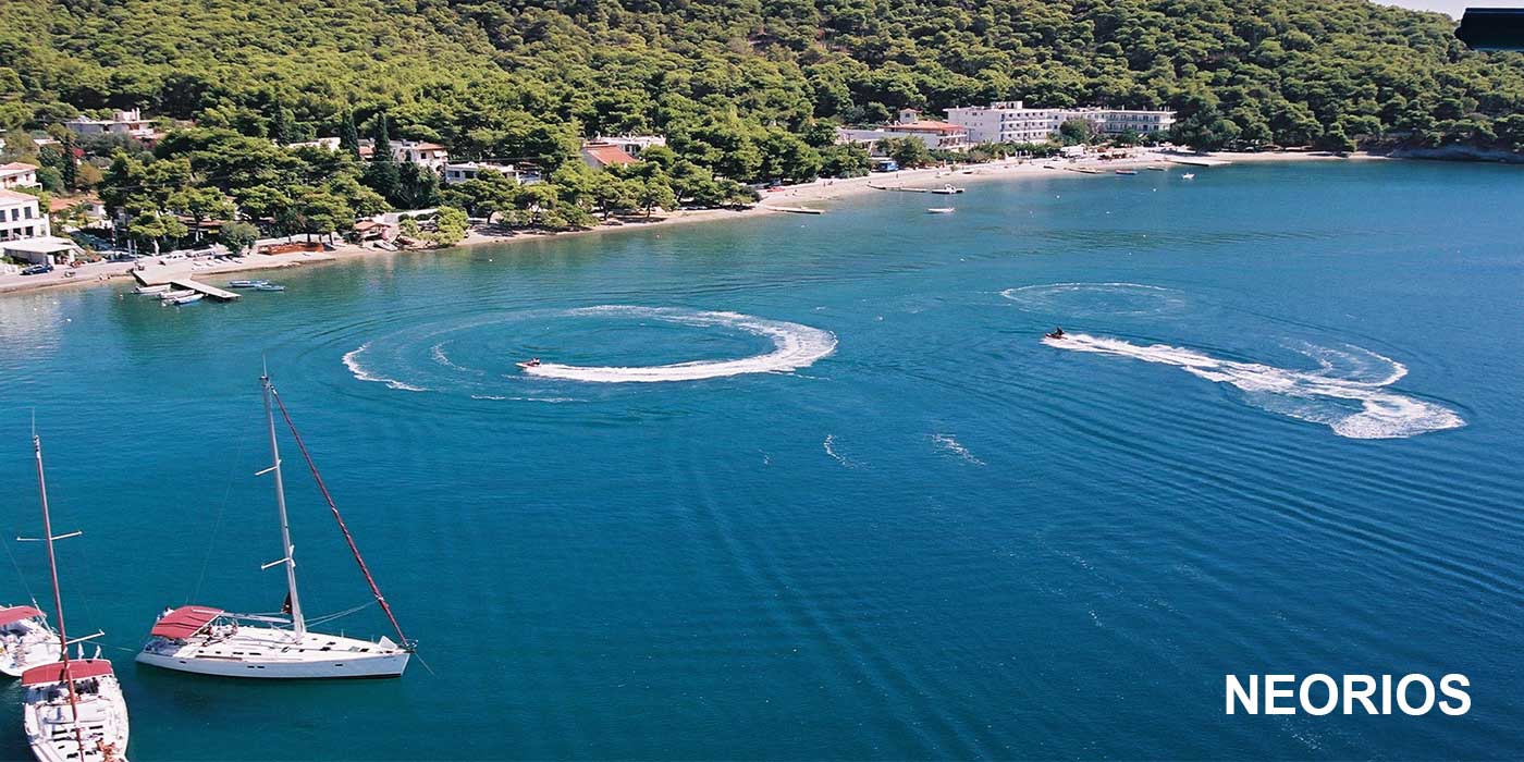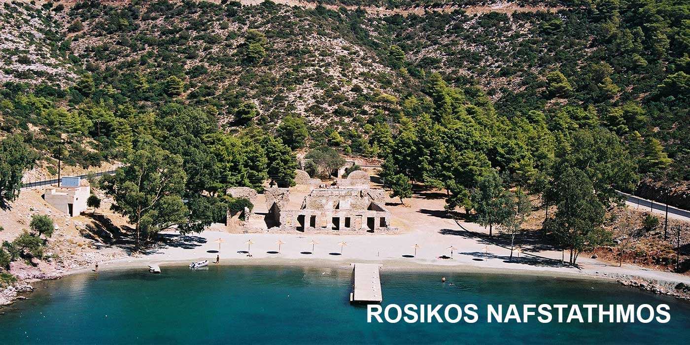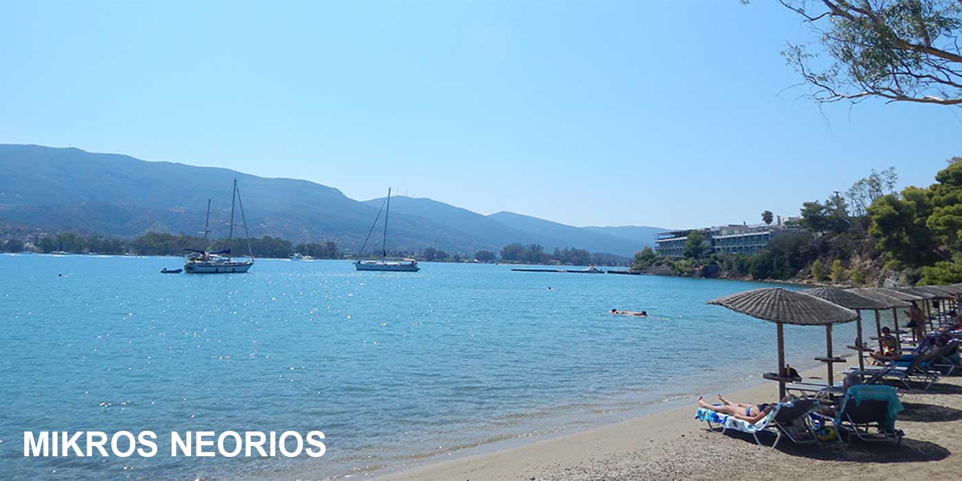 Μετά το γεφυράκι της Διώρυγας, αριστερά και προς τα δυτικά ο παραλιακός δρόμος περνά από την Πέρλια και συναντά διαδοχικά το Μικρό Νεώριο, το Μεγάλο Νεώριο, το Λιμανάκι της Αγάπης και το Ρωσσικό Ναύσταθμο, πολύ όμορφες παραλίες στις οποίες τα πεύκα φτάνουν μέχρι τη θάλασσα και οι οποίες βρίσκονται στον όρμο του Πόρου.