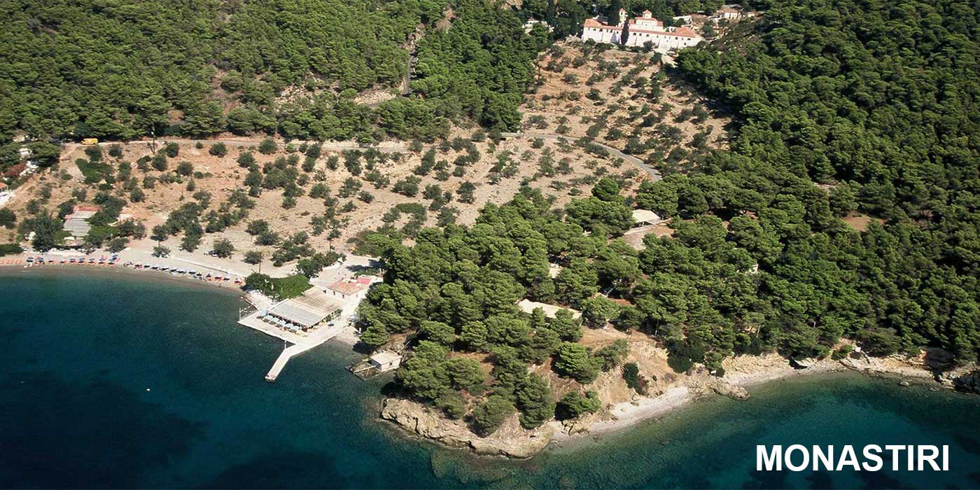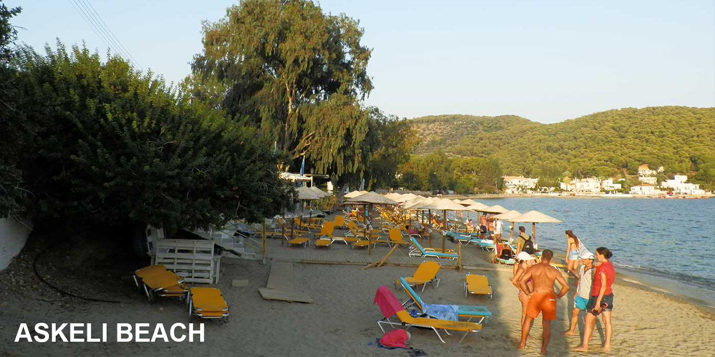 Μετά το γεφυράκι της Διώρυγας, δεξιά ο παραλιακός δρόμος συνεχίζει, προς τα ανατολικά και συναντά διαδοχικά το Ασκέλι και το Μοναστήρι, δύο πολύ γραφικές και πεντακάθαρες παραλίες, που βλέπουν στο ανοικτό πέλαγος.
